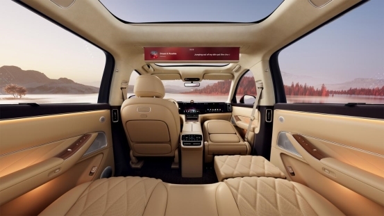 车辆搭载鸿蒙座舱5.0,全车满配超十屏,“三指四向五屏流转”可实现导航、影音等在屏幕间的无缝流转,主驾专注路况、副驾沉浸娱乐、后排畅享观影,全车多人各得其乐互不干扰。车内还有诸多贴心设计,包括六座版四温区独立空调系统,前排双温区与二三排独立温控,全舱6席位均可自定义温度风向,每一位乘员都可解锁舒适体感;32英寸升降投影幕布搭配HUAWEI SOUND音响,瞬间将座舱变为移动私享影院,为旅途增添乐趣。此外,鸿蒙ALPS座舱采用五星健康座舱设计标准,并配备全遮蔽式遮阳帘,从视觉、听觉、触觉到呼吸体验,为全家人带来更加细腻奢适的驾乘体验。