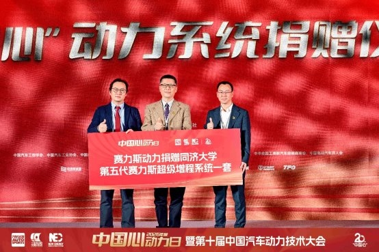 在引领技术发展的同时,赛力斯始终铭记并践行企业社会责任。大会期间,赛力斯向同济大学捐赠了一套第五代赛力斯超级增程系统,将最前沿的技术成果直接引入高校课堂与实验室,此举不仅为产学研协同创新提供了关键“硬件支撑”,,也体现出赛力斯以技术共享助力全行业共同进步的格局与担当。
